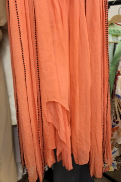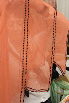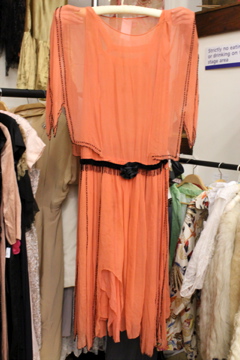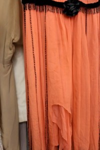 So at the London Fashion & Textile Fair I unearthed this sorbet flavoured flapper dress from Velvet Atelier and they let me take a few shots of it. The detail on the edging is exquisite – the sleeves have geometric angles and edged in black beads with beads running down vertically around the sides of the dress.