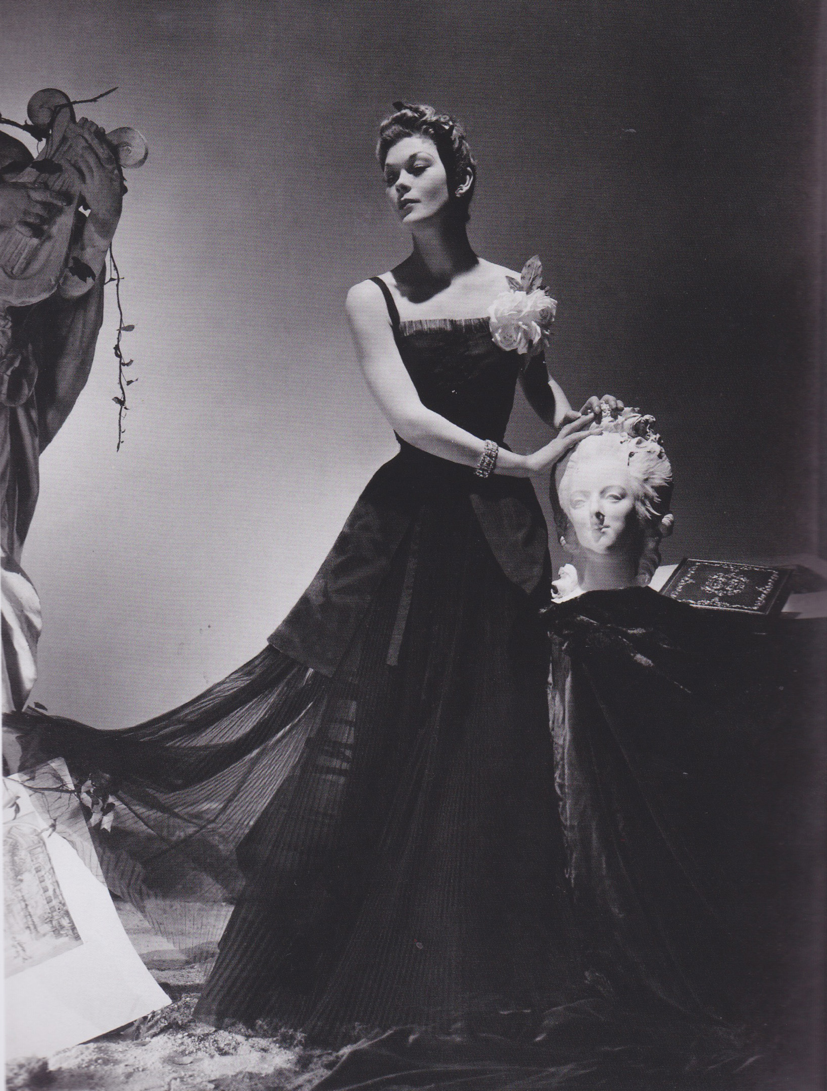 Fate determined a different course for Lud when the famed photographer Horst espied her delivering dresses to Vogue’s Paris studio. Thus at age eighteen, Lud began what was to be a fabulous modeling career, first with the house of Countess Vera Borea, then Patou, then Chanel. She married a French marquis, and knew the delicious experience of having rivals Elsa Schiaparelli and Coco Chanel vie graspingly for her services. In 1937, wearing a draped white gown from Alix and posed like some lethally beautiful Medea between fluted columns, Lud was photographed by Horst in what Vassiliev describes as “one of the immortal images of twentieth century fashion.”