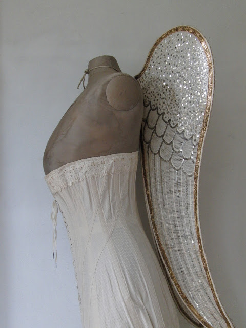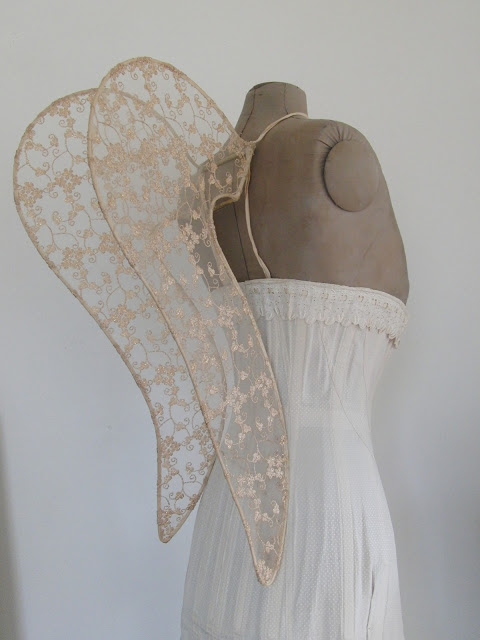 Now, the translation of the post into English was a little shaky, but I think I’m right in saying that these are original Victorian angel wings. Apparently, all the beading and sequins were sewn on by nuns, so that the wings could be used by children performing in church nativity plays.